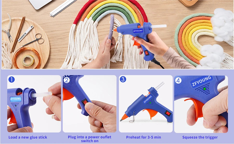 • Fácil de Usar :Basta carregar uma varetilla de cola quente e começar a aplicar. É tão fácil quanto isso.