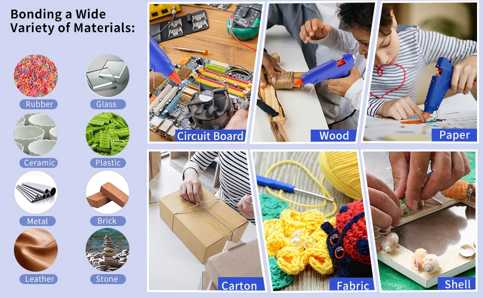 ?? [Aplicação ampla]: Nosso kit de pistola de cola é adequado para diferentes materiais, como metal, plástico, papel, vidro, cerâmica e outros, e peferct para escritório, escola e casa, boa escolha para DIY projeto de artesanato e reparos.