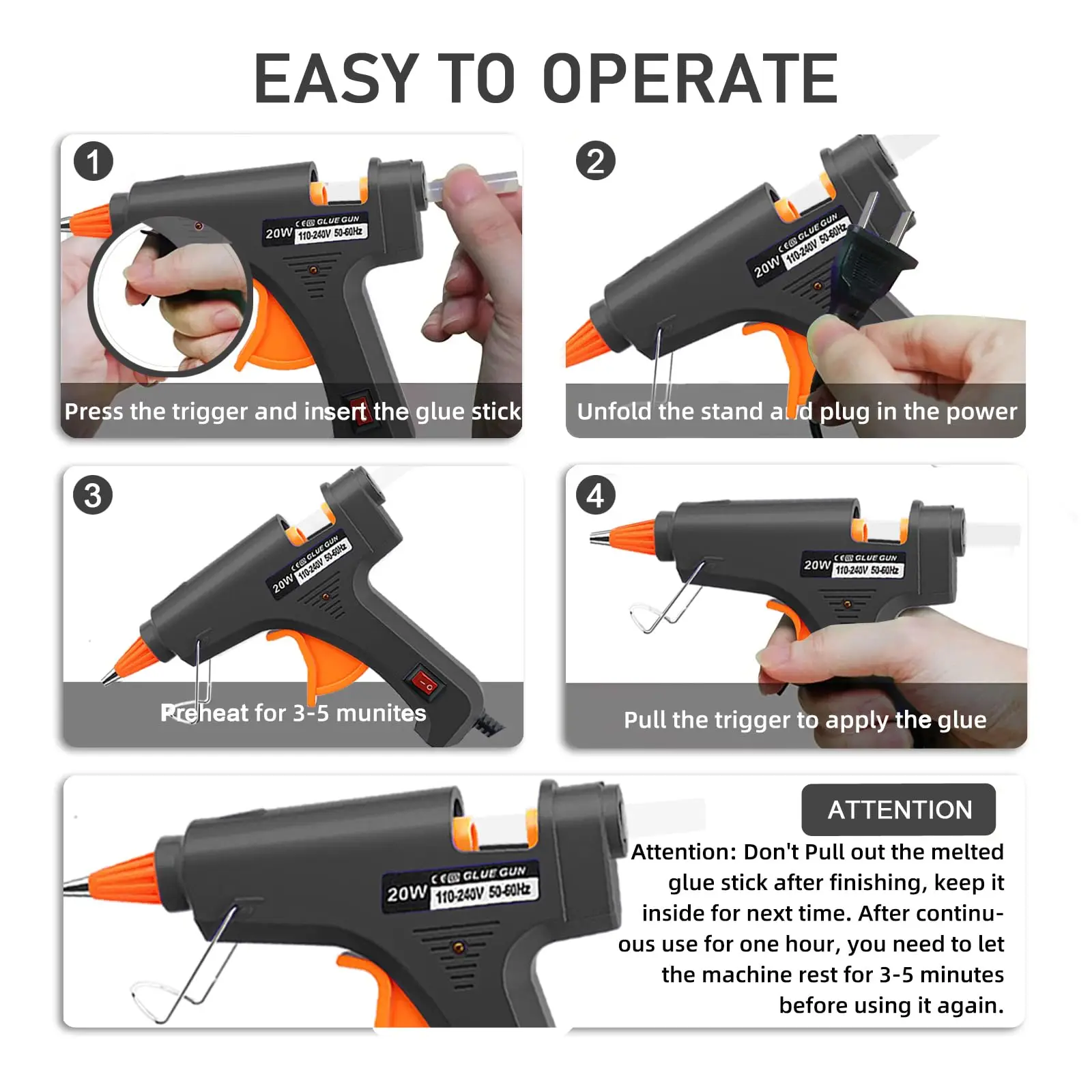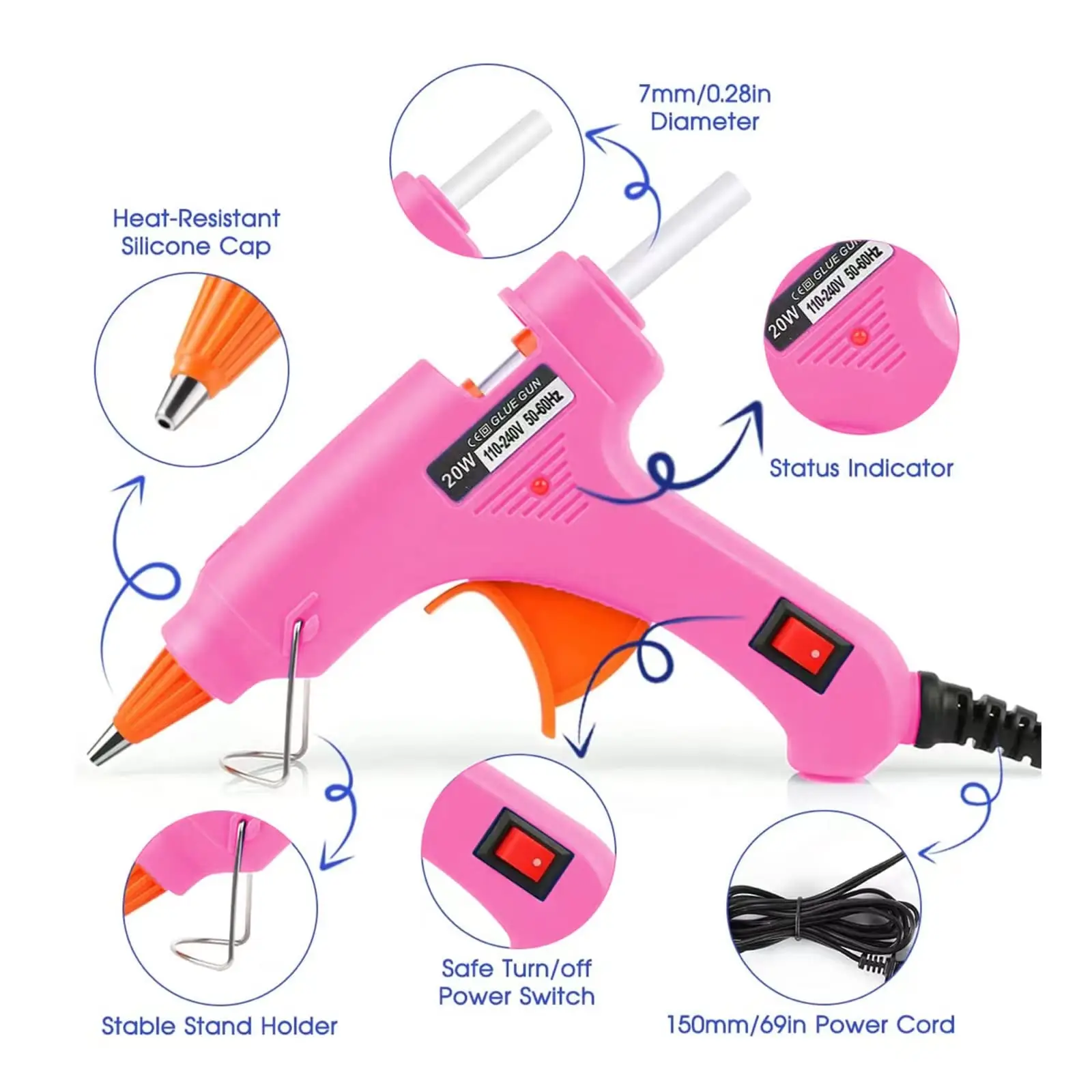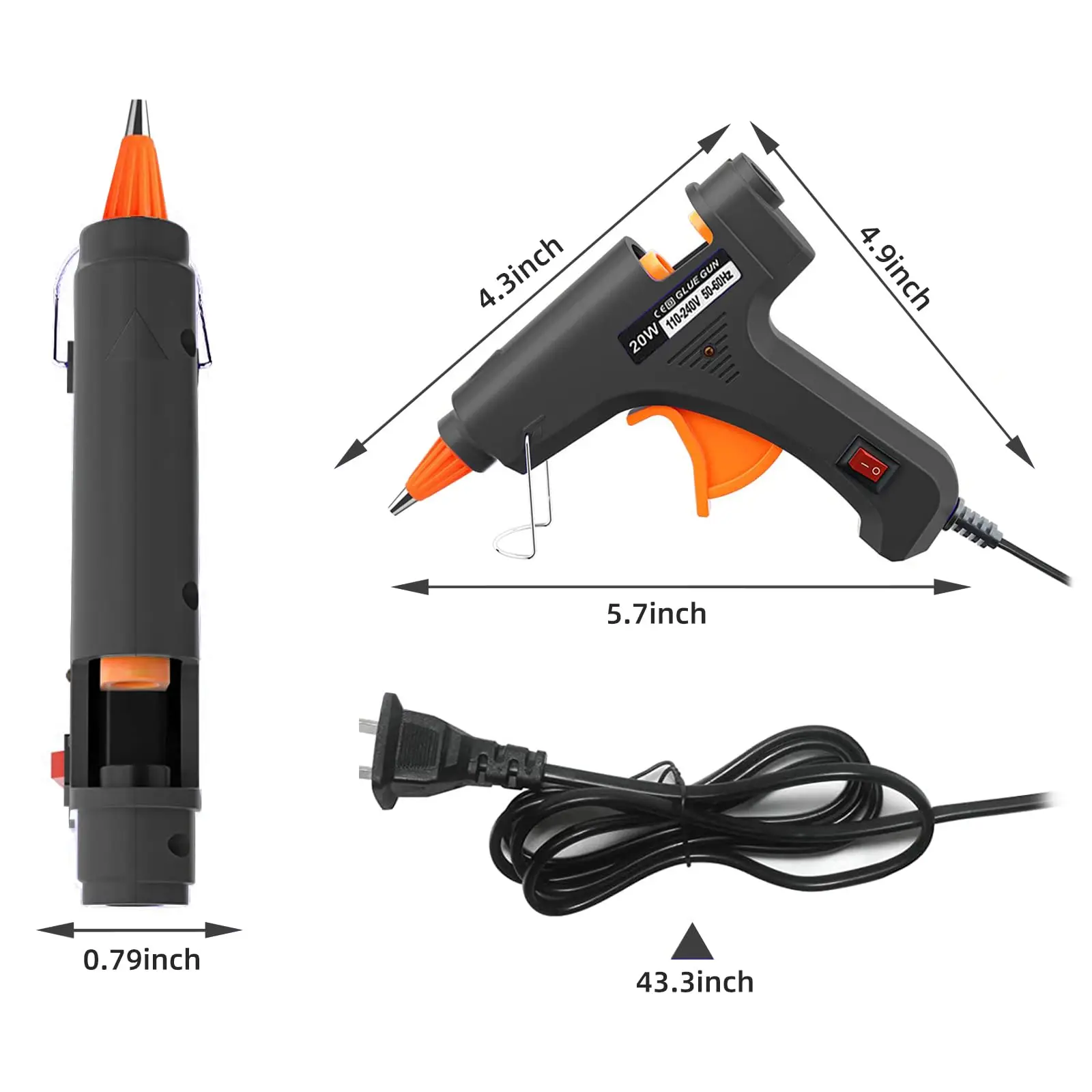 • Potência de 20W :Este pistola de cola quente possui uma potência de 20W, garantindo um aquecimento rápido e eficiente para o uso em vários projetos de artesanato e reparos domésticos.